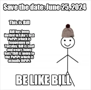 Save the date: June 25, 2024 This is Bill Be like bill Bill has been invited to Meme Template