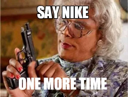 Make your own "SAY NIKE ONE MORE TIME" meme with MemeCreator's free online meme generator. Add text, stickers, and drawings — then download or share. No watermark, no sign-up required.