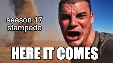 Make your own "Season 17 stampede HERE IT COMES" meme with MemeCreator's free online meme generator. Add text, stickers, and drawings — then download or share. No watermark, no sign-up required.