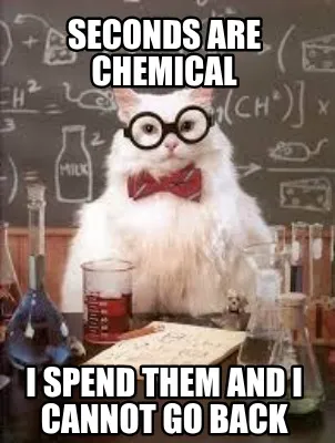 SECONDS ARE CHEMICAL I SPEND THEM AND I CANNOT GO BACK Meme Template