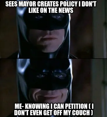 Sees Mayor creates policy I don't like on the news Me- knowing I can petition ( Meme Template