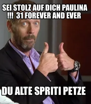 Sei Stolz Auf Dich Paulina 31 Forever And Ever Du Alte Spriti Petze Meme Template