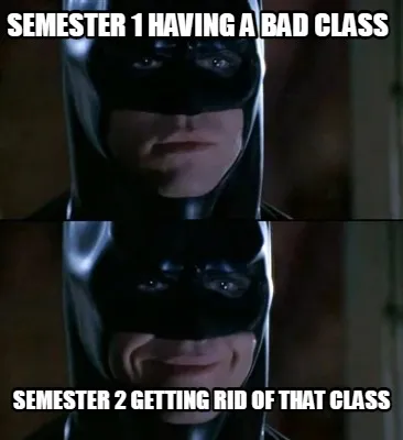 Create Funny Semester 1 having a bad class Semester 2 getting rid of that class Meme