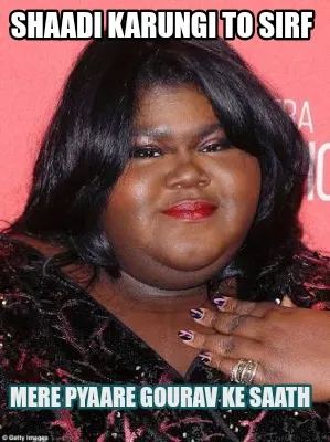 Make your own "Funny Shaadi karungi to sirf Mere pyaare Gourav ke saath" meme with MemeCreator's free online meme generator. Add text, stickers, and drawings — then download or share. No watermark, no sign-up required.