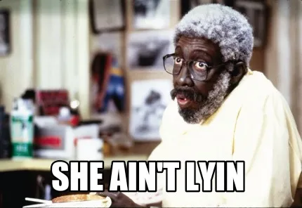 Make your own "She ain't lyin" meme with MemeCreator's free online meme generator. Add text, stickers, and drawings — then download or share. No watermark, no sign-up required.
