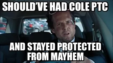 Funny Should’ve had COLE PTC And stayed protected from Mayhem Meme Template