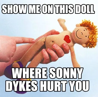 Make your own "Funny Show Me On This Doll Where Sonny dykes hurt you" meme with MemeCreator's free online meme generator. Add text, stickers, and drawings — then download or share. No watermark, no sign-up required.