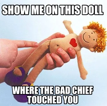 Show me on this doll Where the bad Chief touched you Meme Template