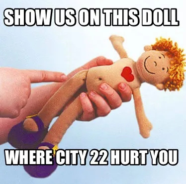 Funny SHOW US ON THIS DOLL WHERE CITY 22 HURT YOU Meme Template
