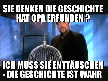 Make your own "Funny Sie denken die Geschichte hat Opa erfunden ? Ich muss Sie enttäuschen - die Ges" meme with MemeCreator's free online meme generator. Add text, stickers, and drawings — then download or share. No watermark, no sign-up required.