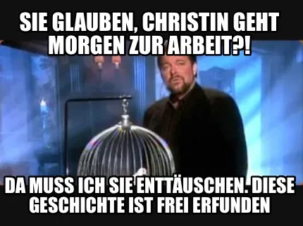Make your own "Funny Sie glauben, Christin geht morgen zur Arbeit?! Da muss ich Sie enttäuschen. Die" meme with MemeCreator's free online meme generator. Add text, stickers, and drawings — then download or share. No watermark, no sign-up required.