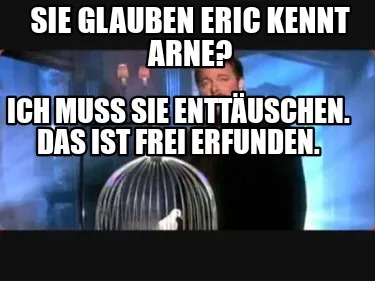 Make your own "Funny Sie glauben Eric kennt Arne? Ich muss sie enttäuschen. Das ist frei erfunden." meme with MemeCreator's free online meme generator. Add text, stickers, and drawings — then download or share. No watermark, no sign-up required.