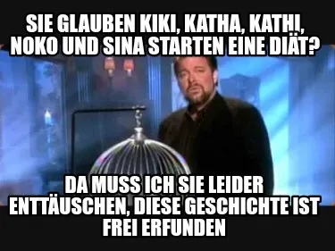 Make your own "Funny Sie glauben Kiki, Katha, Kathi, Noko und Sina starten eine Diät? Da muss ich Si" meme with MemeCreator's free online meme generator. Add text, stickers, and drawings — then download or share. No watermark, no sign-up required.