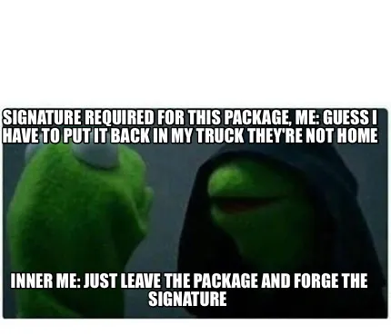 Create Signature required for this package, me: guess i have to put it back in my truck Meme