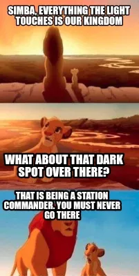 Make your own "Funny Simba, everything the light touches is our kingdom That is being a station comma" meme with MemeCreator's free online meme generator. Add text, stickers, and drawings — then download or share. No watermark, no sign-up required.