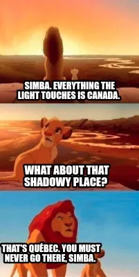 Create Funny Simba. Everything the light touches is Canada. That's Québec. You must never g Meme