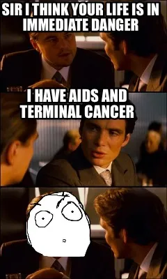 Funny Sir I think your life is in immediate danger I have AIDS and terminal cancer Meme Template