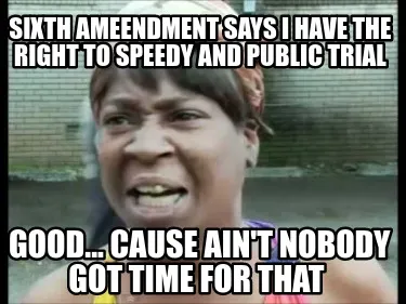 Funny sixth ameendment says i have the right to speedy and public trial good... cause Meme Template