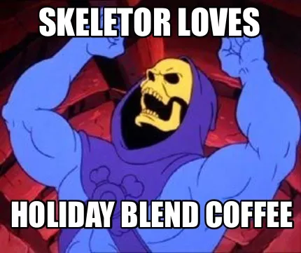 Create Funny Skeletor LOVES Holiday Blend Coffee Meme