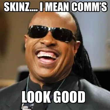 Make your own "Skinz…. I mean Comm’s Look good" meme with MemeCreator's free online meme generator. Add text, stickers, and drawings — then download or share. No watermark, no sign-up required.