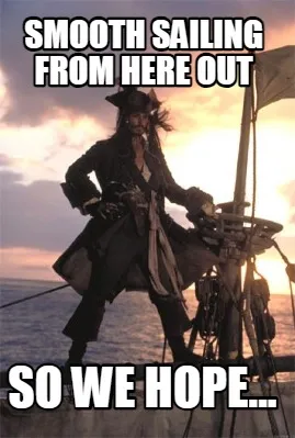 Make your own "Smooth sailing from here out so we hope..." meme with MemeCreator's free online meme generator. Add text, stickers, and drawings — then download or share. No watermark, no sign-up required.