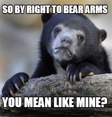 Make your own "So by right to bear arms You mean like mine?" meme with MemeCreator's free online meme generator. Add text, stickers, and drawings — then download or share. No watermark, no sign-up required.
