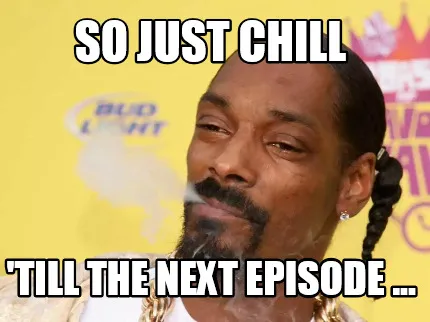Make your own "So just chill 'till the next episode ..." meme with MemeCreator's free online meme generator. Add text, stickers, and drawings — then download or share. No watermark, no sign-up required.