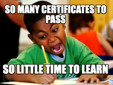Create SO MANY CERTIFICATES TO PASS SO LITTLE TIME TO LEARN Meme