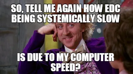 So, tell me again how EDC being systemically slow Is due to MY computer speed? Meme Template