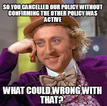 Create Funny So you cancelled our policy without confirming the other policy was active what Meme
