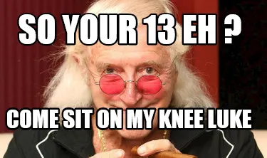 Create Funny so your 13 eh ? come sit on my knee luke Meme
