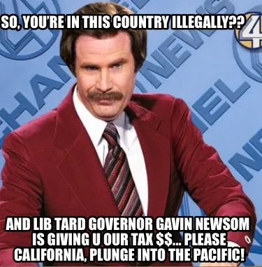 Create Funny So, you’re in this country illegally?? And LIB Tard governor Gavin Newsom is Meme