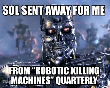 Create Funny Sol sent away for me From “robotic killing machines” quarterly Meme