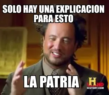 Make your own "Solo hay una explicacion para esto La patria" meme with MemeCreator's free online meme generator. Add text, stickers, and drawings — then download or share. No watermark, no sign-up required.