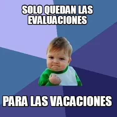 Make your own "Funny solo quedan las evaluaciones para las vacaciones" meme with MemeCreator's free online meme generator. Add text, stickers, and drawings — then download or share. No watermark, no sign-up required.
