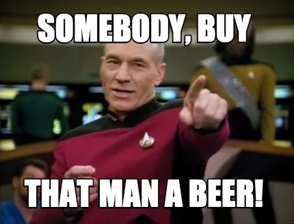 Funny SOMEBODY, buy that man a Beer! Meme Template
