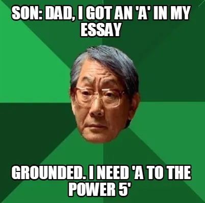 Create Funny Son: Dad, I got an 'A' in my essay Grounded. I need 'A to the power 5' Meme