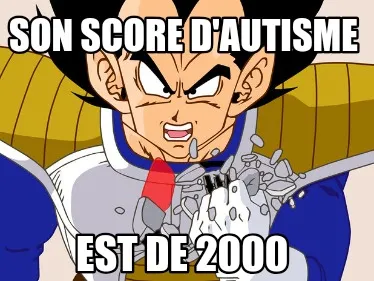Make your own "Son score d'autisme Est de 2000" meme with MemeCreator's free online meme generator. Add text, stickers, and drawings — then download or share. No watermark, no sign-up required.
