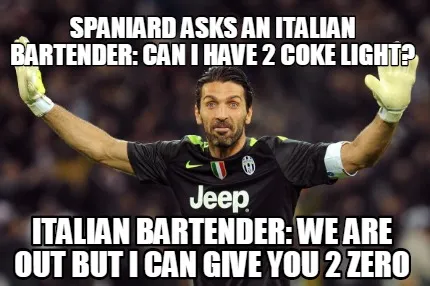 Create Spaniard ASKS an italian bartender: can i have 2 coke light? italian bartender: Meme