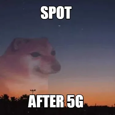 Make your own "Spot after 5g" meme with MemeCreator's free online meme generator. Add text, stickers, and drawings — then download or share. No watermark, no sign-up required.