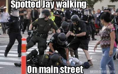 Make your own "Spotted Jay walking On main street" meme with MemeCreator's free online meme generator. Add text, stickers, and drawings — then download or share. No watermark, no sign-up required.