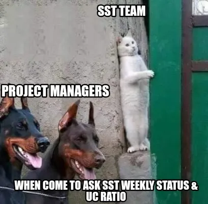 Funny Sst team Project managers When come to ask sst weekly status & uc ratio Meme Template