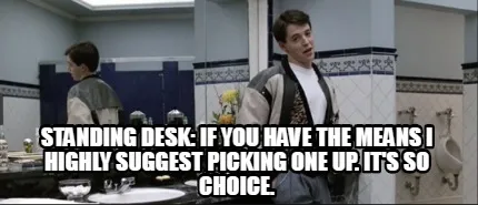 Make your own "Standing desk: if you have the means i highly suggest picking one up. It's so c" meme with MemeCreator's free online meme generator. Add text, stickers, and drawings — then download or share. No watermark, no sign-up required.