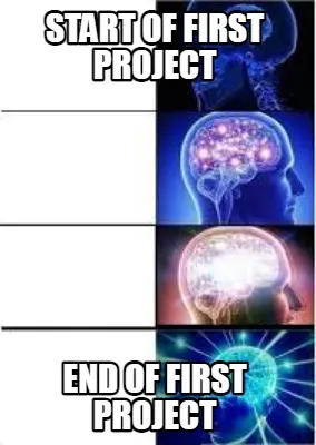 Make your own "Funny start of first project end of first project" meme with MemeCreator's free online meme generator. Add text, stickers, and drawings — then download or share. No watermark, no sign-up required.