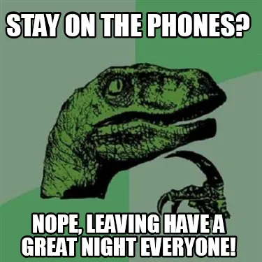 Funny stay on the phones? Nope, leaving have a great night everyone! Meme Template