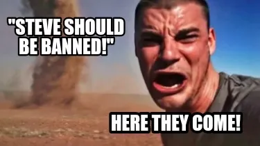 Create Funny "STEVE SHOULD BE BANNED!" Here they come! Meme