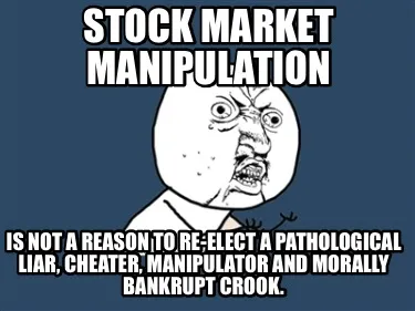 Stock market manipulation is not a reason to re-elect a pathological liar, cheat Meme Template