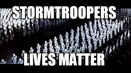 Make your own "Stormtroopers lives matter" meme with MemeCreator's free online meme generator. Add text, stickers, and drawings — then download or share. No watermark, no sign-up required.