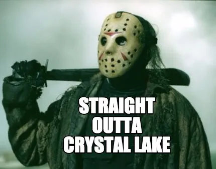Make your own "Straight Outta Crystal Lake" meme with MemeCreator's free online meme generator. Add text, stickers, and drawings — then download or share. No watermark, no sign-up required.