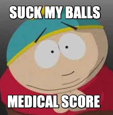 Make your own "SUCK MY BALLS medical score" meme with MemeCreator's free online meme generator. Add text, stickers, and drawings — then download or share. No watermark, no sign-up required.